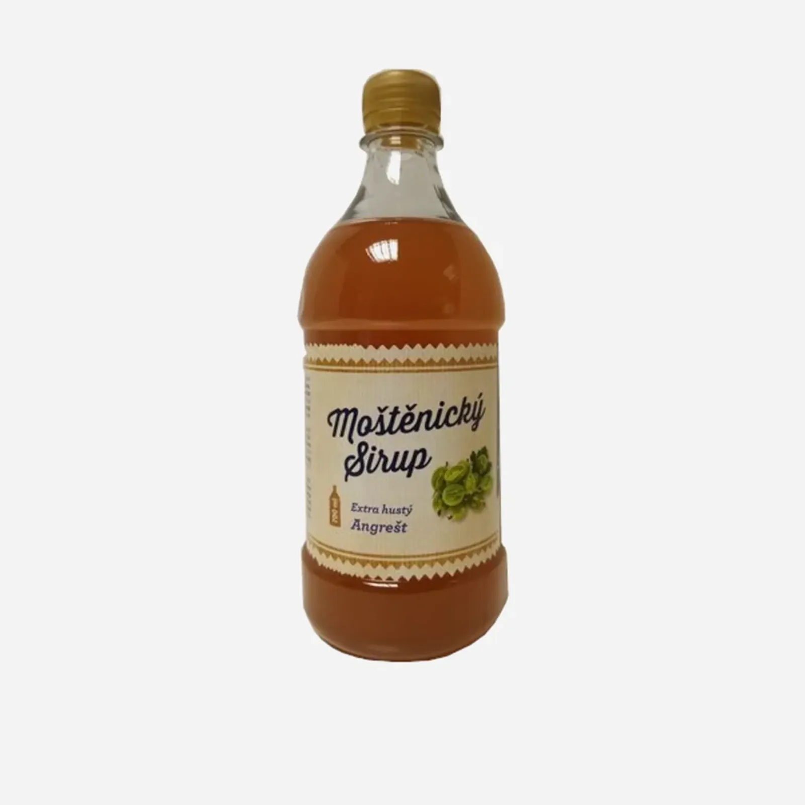 Složení: cukr, voda, angreštová šťáva z koncentrátu (20 %), kyselina: kyselina citrónová, aroma