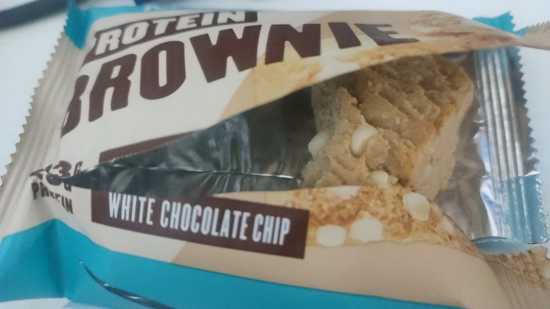 Protein Brownie White Chocolate Chip je spojení cookies a brownies do jedné extrémně lahodné tyčinky s vysokým obsahem bílkovin.