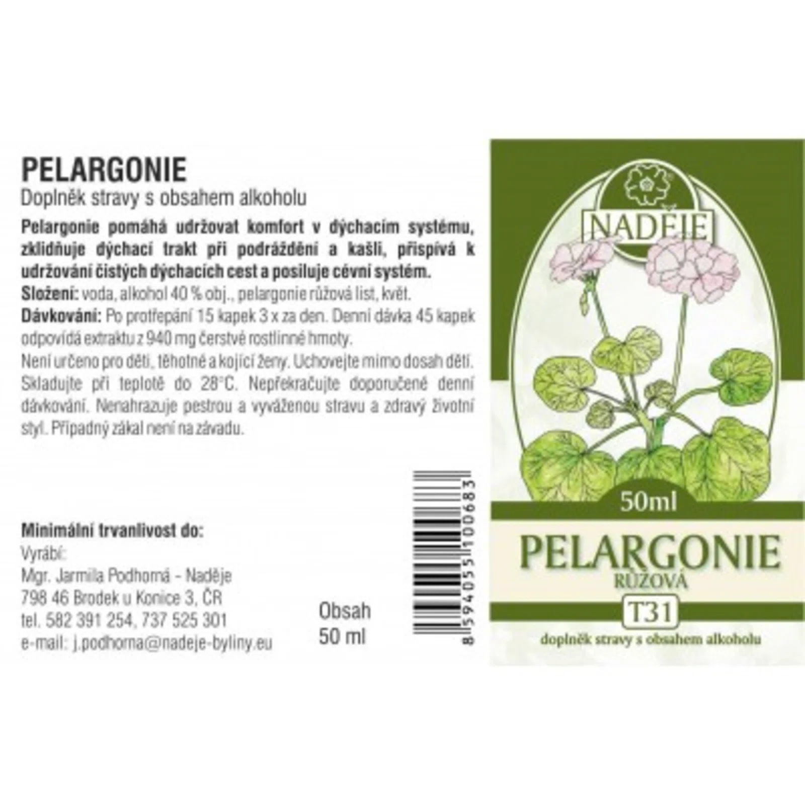 Naděje - Podhorná Pelargonie růžová tinktura z byliny 50 ml