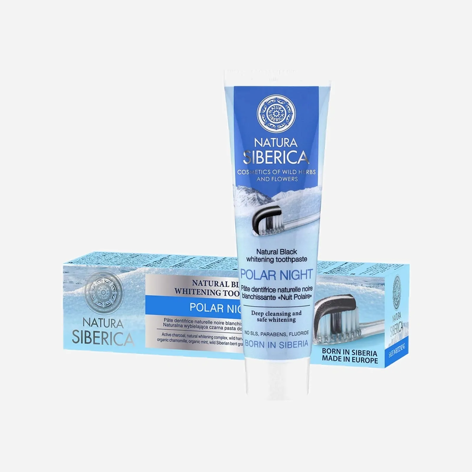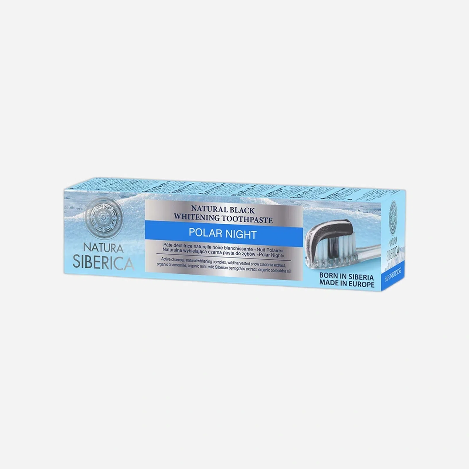 Zubní pasta s přírodním bělicím komplexem a aktivním uhlím šetrně zbaví chrup zabarvení od černého čaje, kávy či kořeněných jídel. Zuby po vyčištění zůstávají krásně hladké a díky mořské soli také posílené a chráněné před růstem bakterií způsobujících zubní kaz. Pasta je obohacená o rakytníkový olej, výtažky z divokých sibiřských bylinek, heřmánkový a mátový hydrolát, které vám zajistí svěží dech a současně pečují o dásně, které chrání před paradontózou či krvácením.