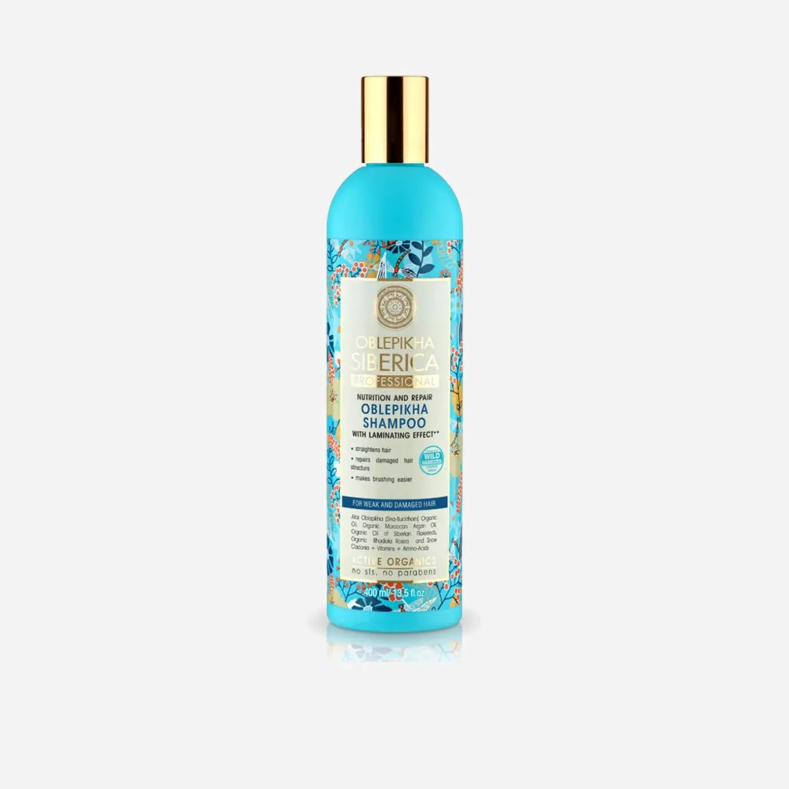 Rakytníkový šampon pro poškozené vlasy Natura Siberica obnovuje strukturu poškozených vlasů, lehce ji zaceluje a vlas revitalizuje. Spojení výživných rostlinných extraktů a olejů dodává vlasu i pokožce hlavy potřebné živiny, vlas posiluje a chrání před opětovným poškozením při pravidelné úpravě horkým vzduchem i častém barvení.