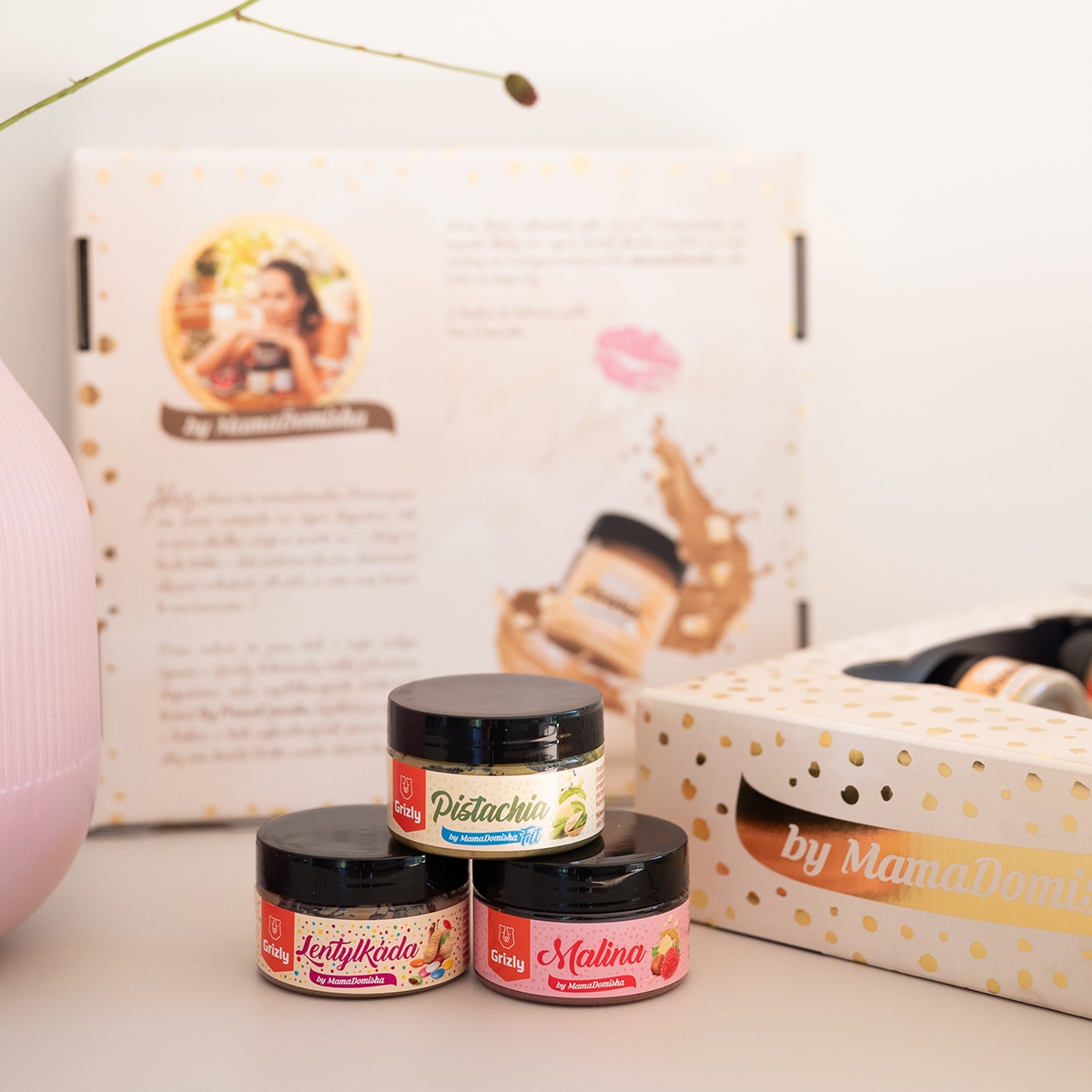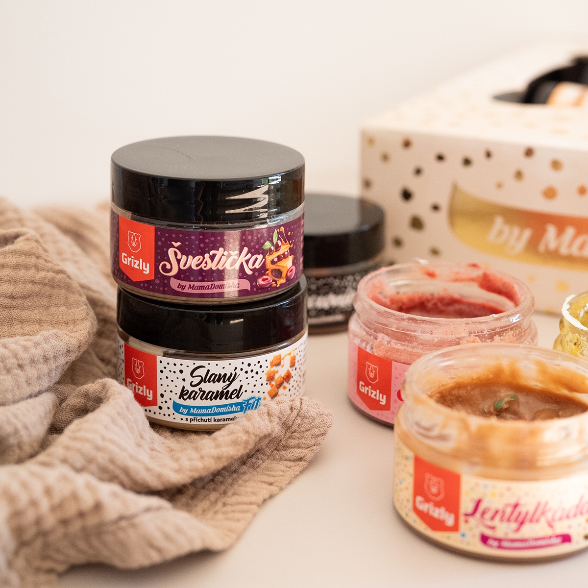Pokud víte o někom, kdo na sladkém ujíždí, věnujte mu Ochutnávkový set jako dárek! Radost určitě udělá také Bestseller set, jenž v sobě ukrývá čtyři velmi oblíbené oříškové krémy z dílny GRIZLY by @mamadomisha.