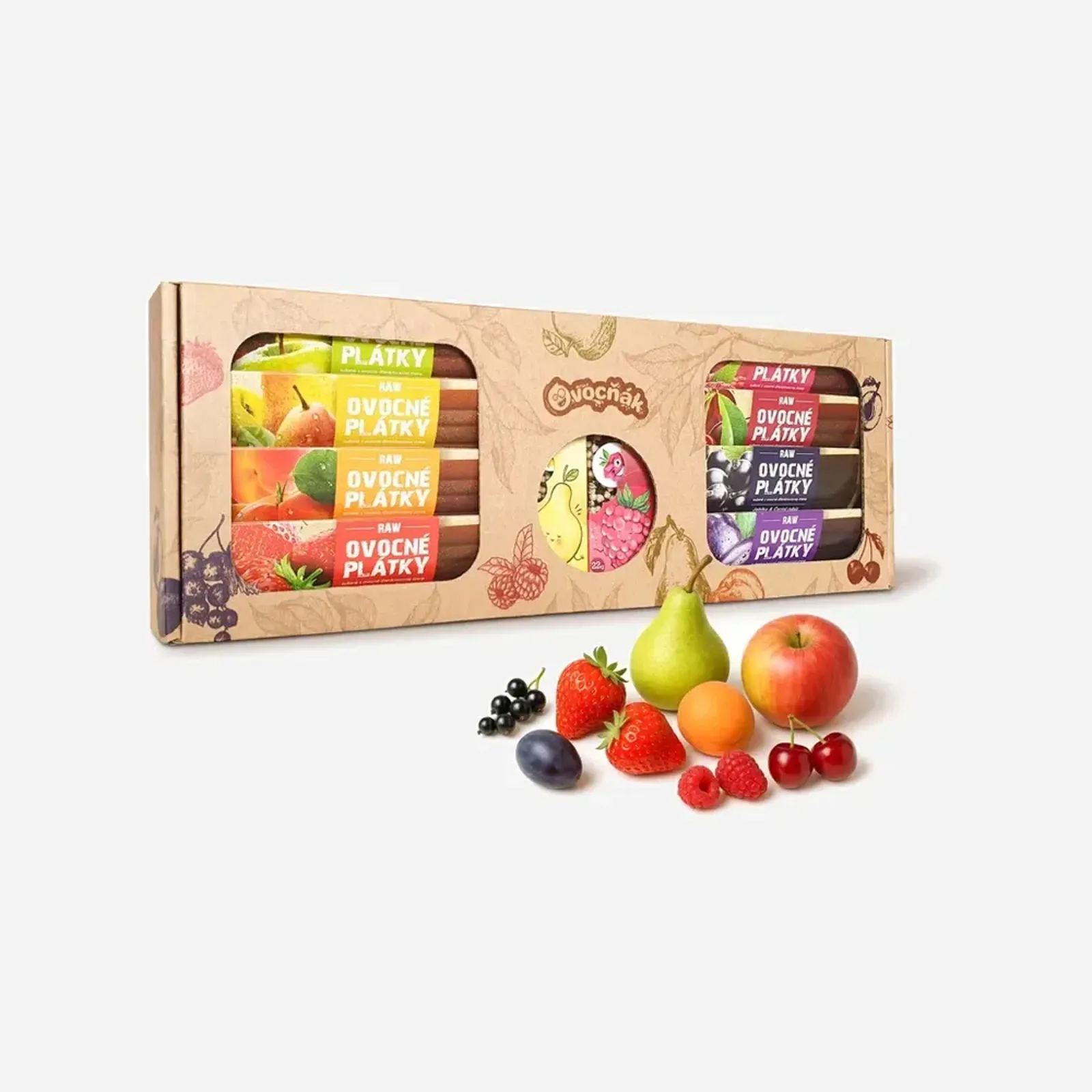 Dárková „bonboniéra” ve které je poctivá dávka vitamínů v podobě 8 balení ovocných plátků a navíc i 2 balení křupavých PUFů z hrušek a malin. Vyzkoušejte všechny chutě které nabízí, nebo jen prostě udělejte radost svým blízkým.