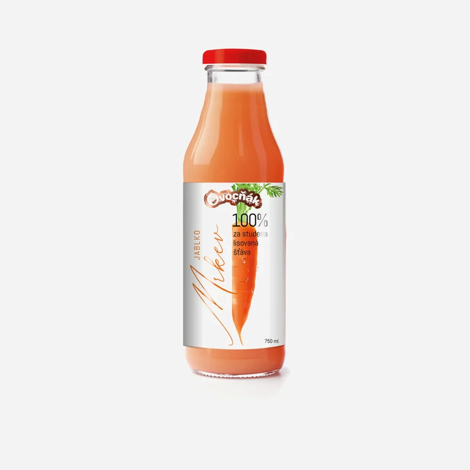 100% šťáva z ovoce, která je vyrobena z pečlivě vybraných plodů. Mošt je lisovaný za studena, aby se zachovalo co nejvíce z přírody. Do jednoho 330 ml balení je vylisováno 530 g čerstvého ovoce a zeleniny. Je použita šetrná pasterace a nejsou přidány žádné další látky. Ovocňák obsahuje pouze přirozeně se vyskytující cukry. Mrkev je považována za zlatý důl přírodních vitamínů a látek. Jak všichni jistě víme, žádná jiná rostlina neobsahuje tolik beta-karotenů jako mrkev. V lidském těle je beta-karoten přeměněn na vitamin A. Kromě zmiňovaných beta-karotenů najdeme v karotce velké množství listové kyseliny, která je důležitá pro správný metabolismus tuků. Mrkev je také výborným zdrojem přírodního hořčíku.