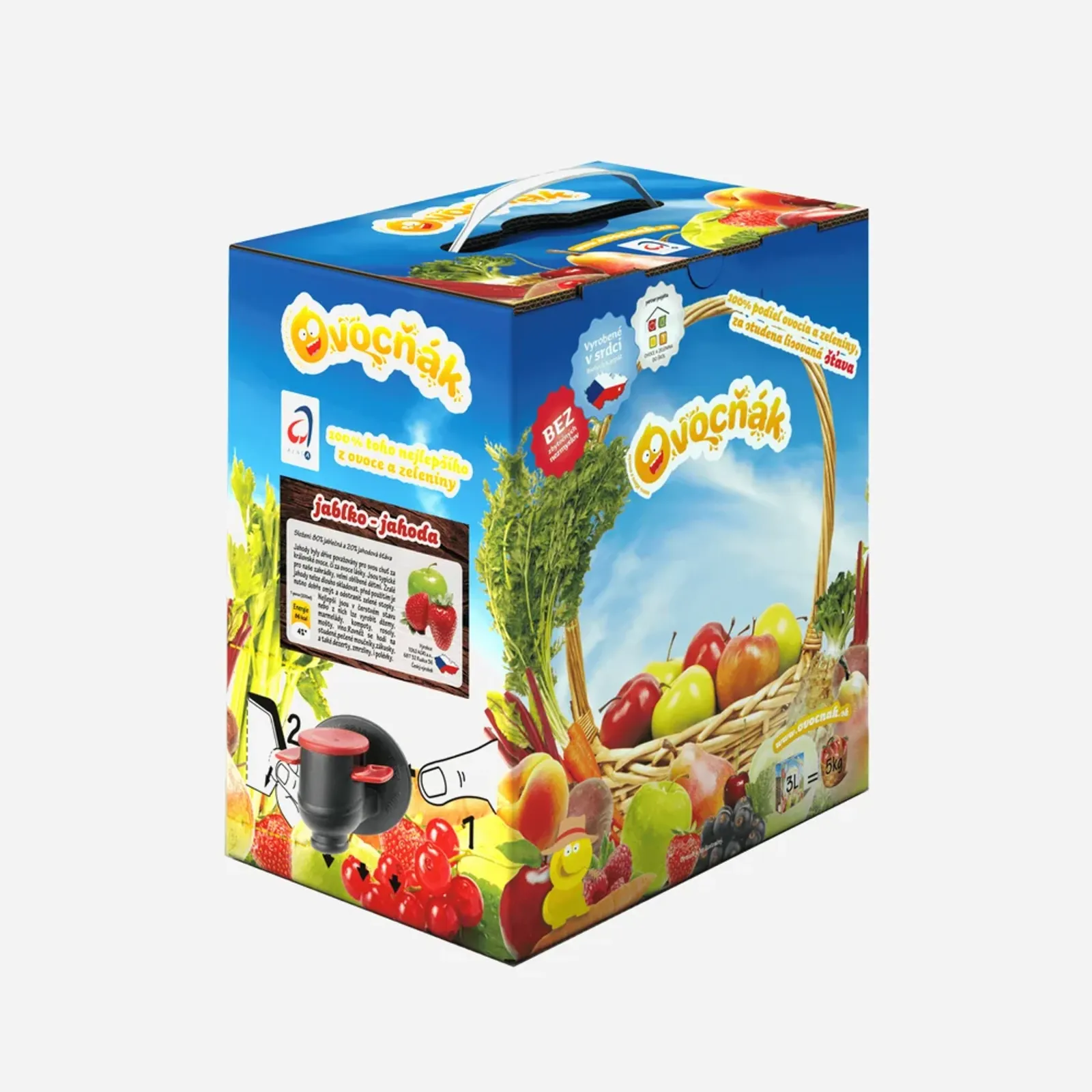 Složení: 80 % jablečná šťáva a 20 % jahodová šťáva