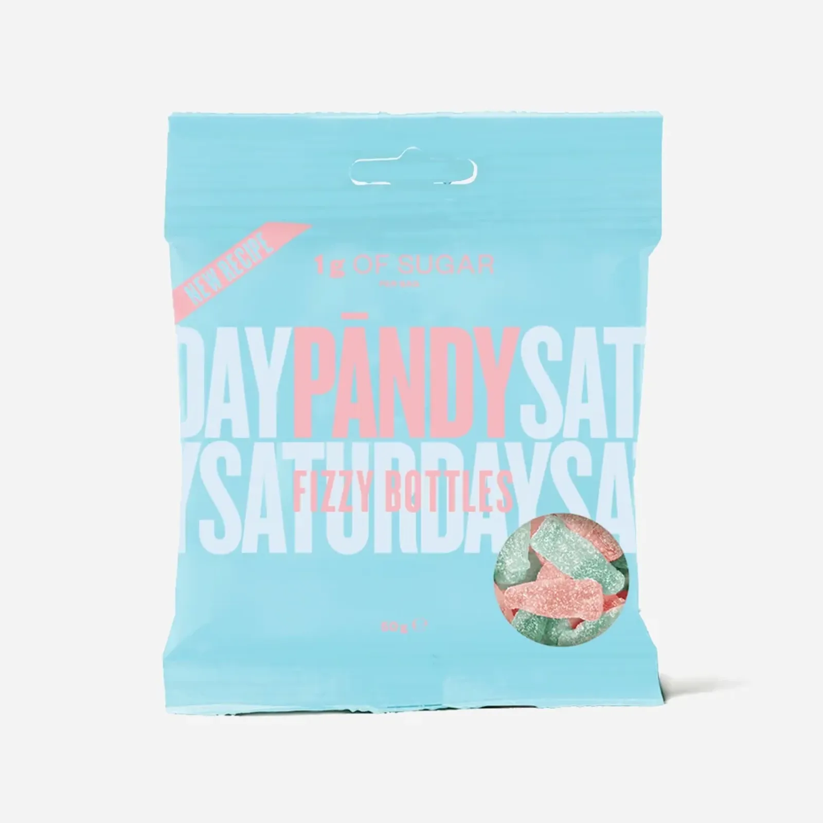 Pändy Fizzy Bottles jsou gumové bonbóny bez přidaného cukru s příchutí žvýkačky. Obsahují minimální množství cukru a žádný tuk, také potěší obzvláště vysokým obsahem vlákniny v množství až 57 %. Skvěle se hodí jako nízkokalorická alternativa standardních želatinových bonbónů dostupných v supermarketech.