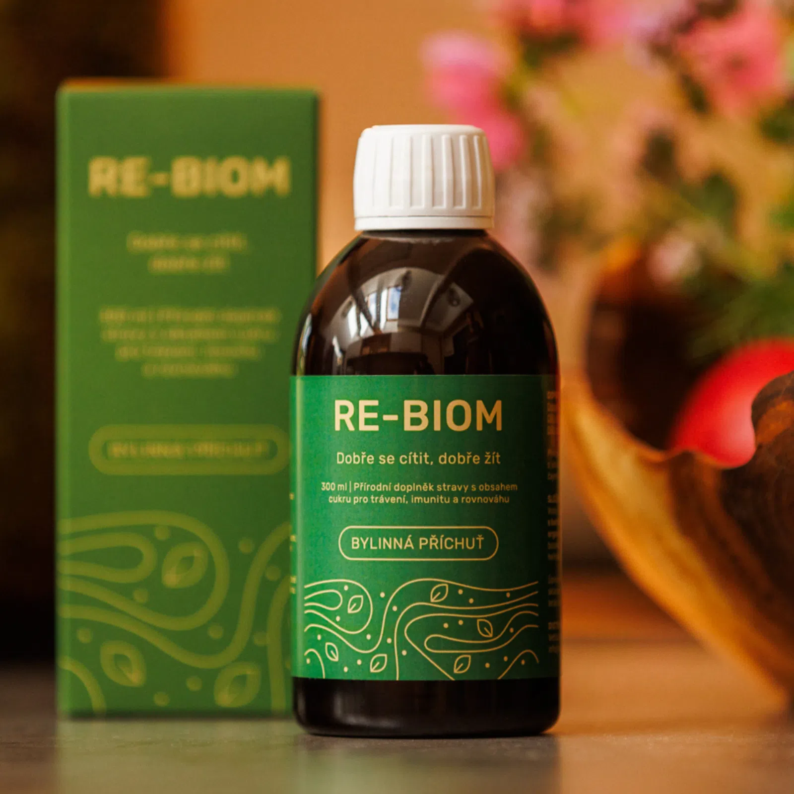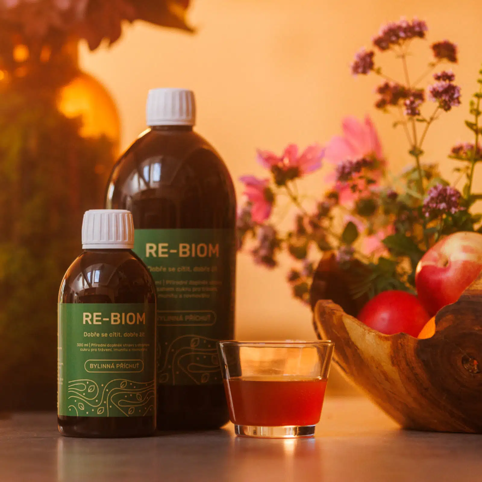 Re-BIOM je tekutý doplněk stravy s obsahem fermentovaných bylin a postbiotických složek – určený pro každodenní péči o trávení, střevní mikrobiom a vnitřní rovnováhu.