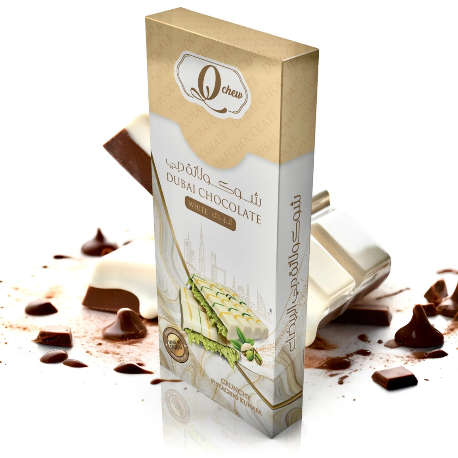 Dubajská čokoláda je lahodná delikatesa, která vás okamžitě přenese do světa luxusu a exotiky. Vyrobená v bílé variantě z vysoce kvalitních surovin.