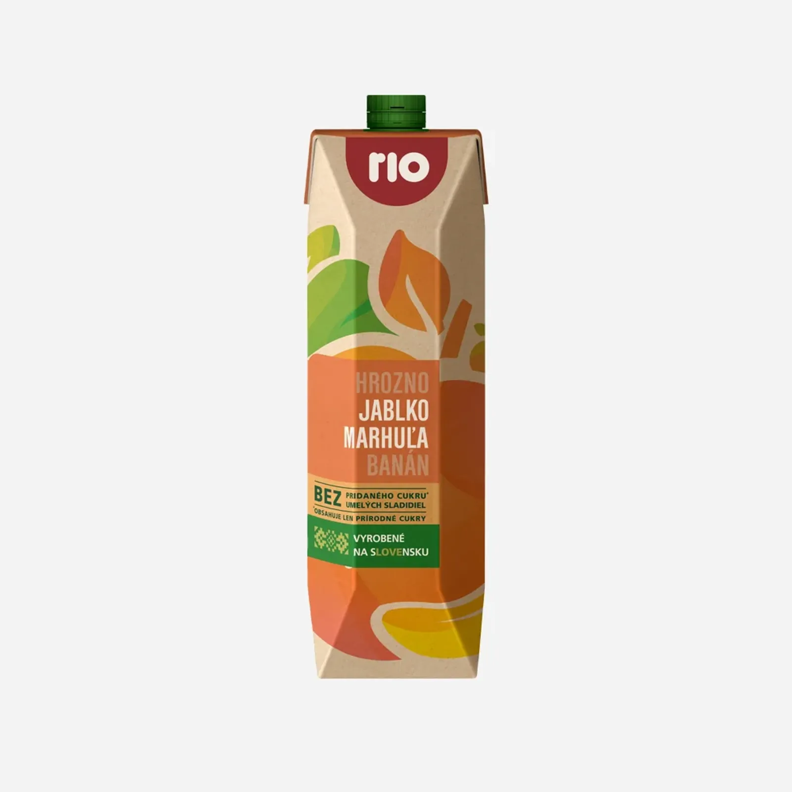 Rio vícedruhový ovocný nápoj s jablkem a meruňkou. Bez přidaného cukru.