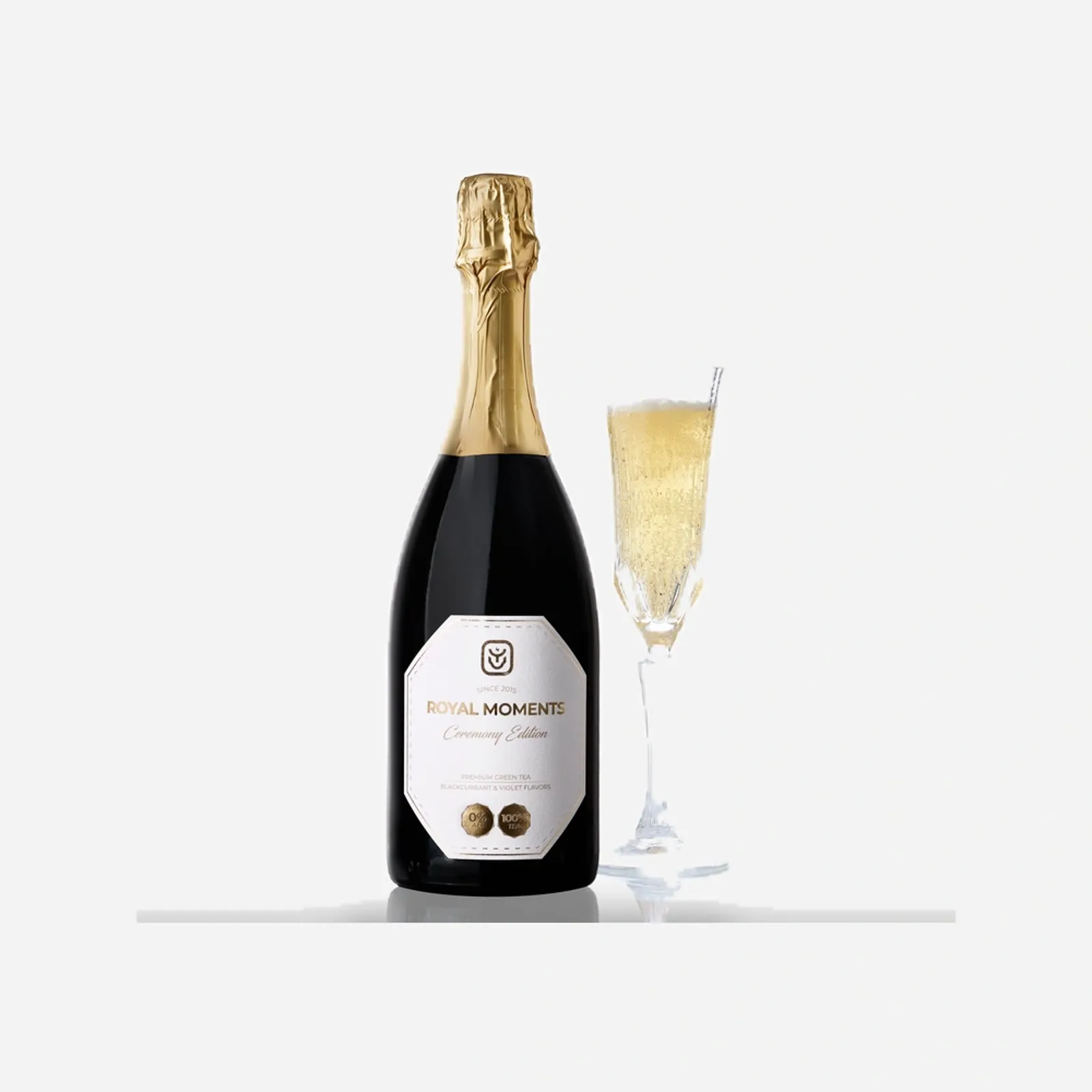 Zažijte výjimečný okamžik s Royal Moments – sofistikovaným nealkoholickým nápojem, který dokonale kombinuje zelený čaj, černý rybíz a jemné aroma fialky.