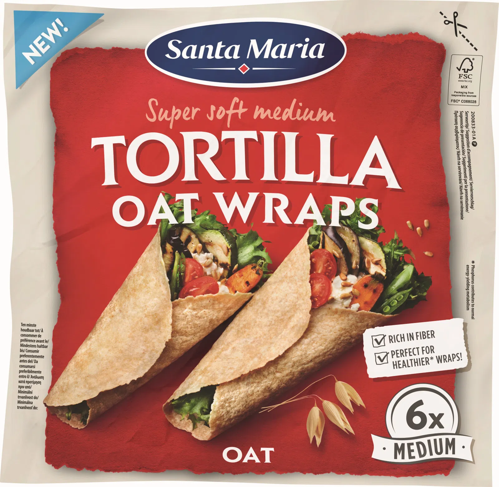Balení obsahuje 6 medium ovesných wrap tortill, které se skvěle hodí k přípravě mexických pokrmů a wrapů.