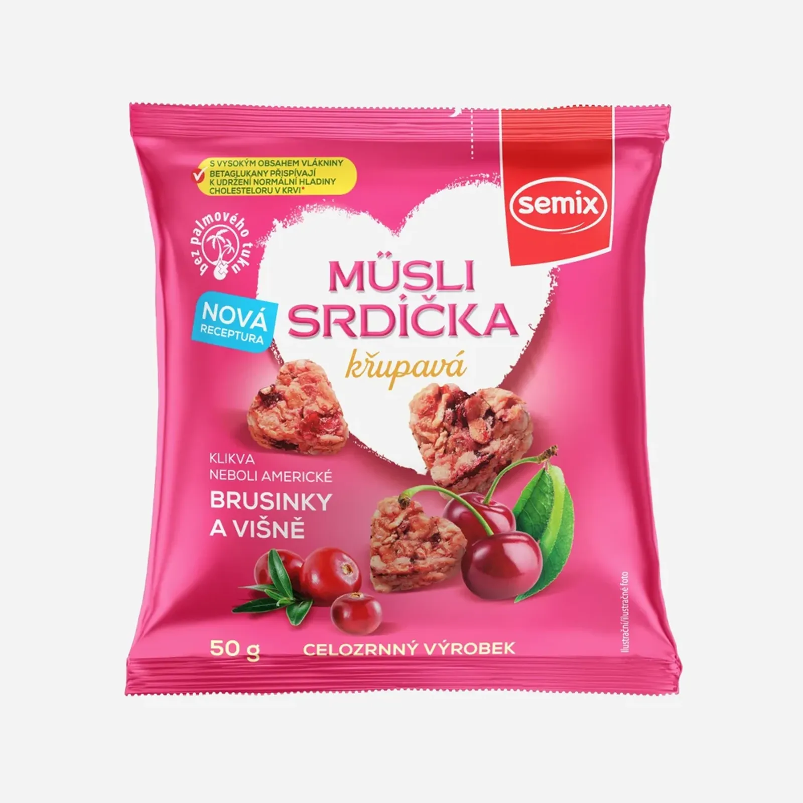SEMIX Müsli srdíčka s klikvou a višněmi, 50 g