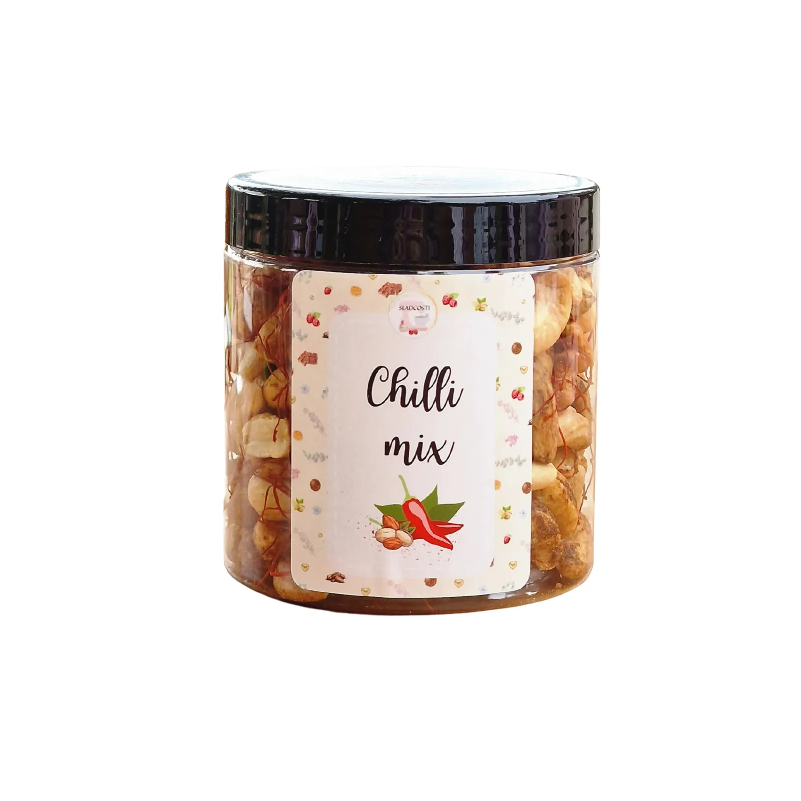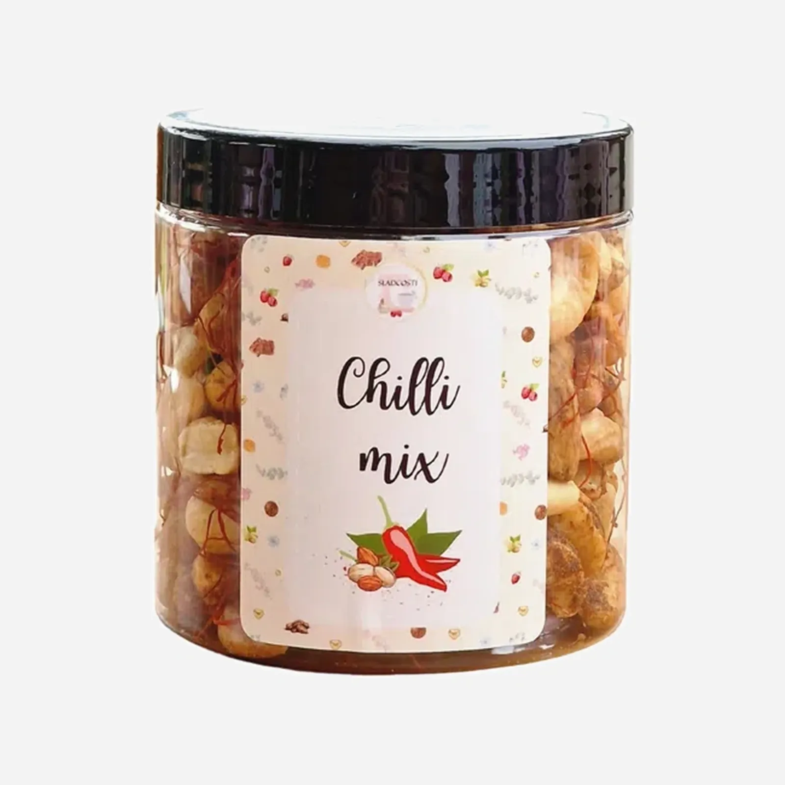 Originálně vytvořená oříšková chilli směs spojuje prvotřídní pražené oříšky a chilli, které spolu vytvářejí chuťový zážitek, co zahřeje i potěší vaše chuťové buňky.