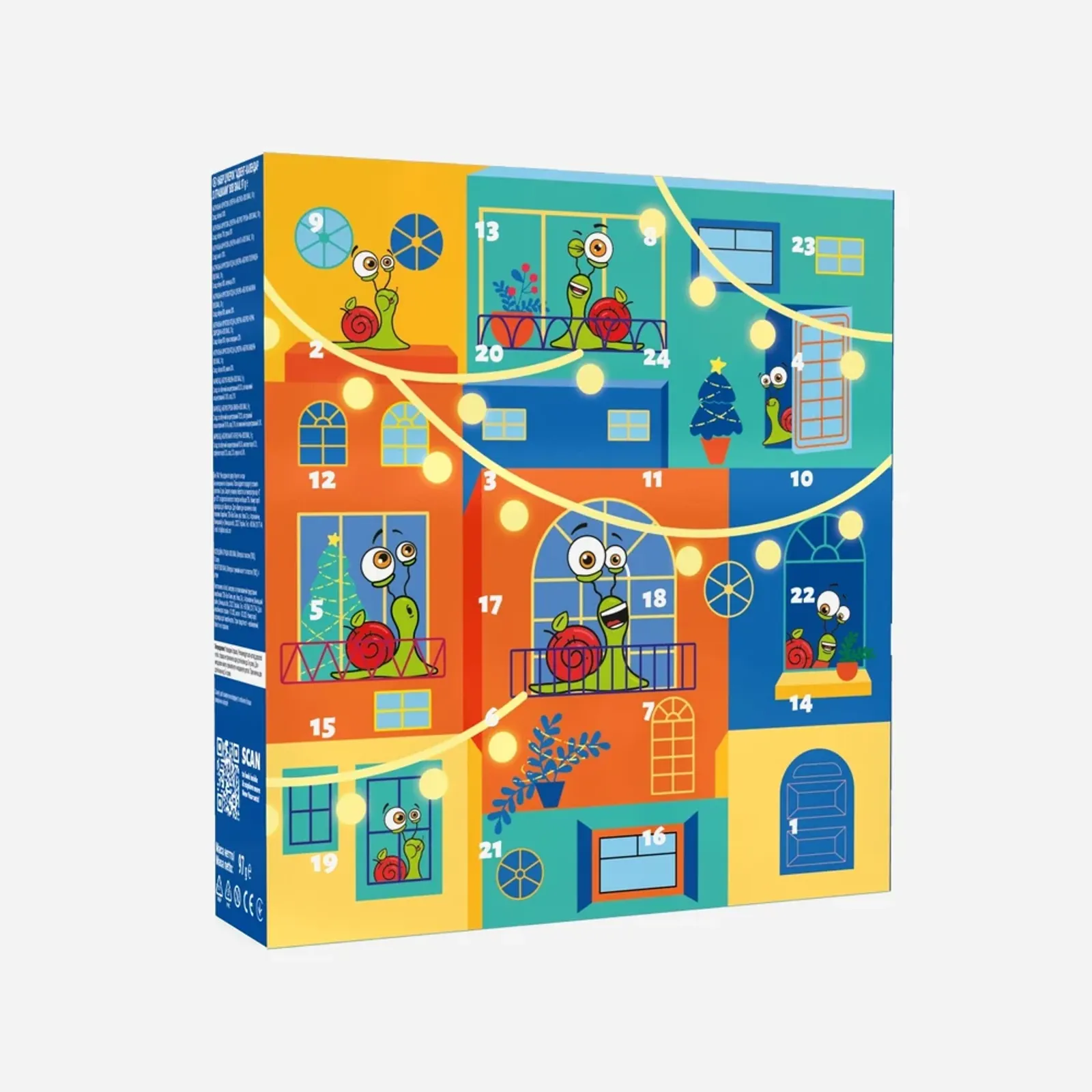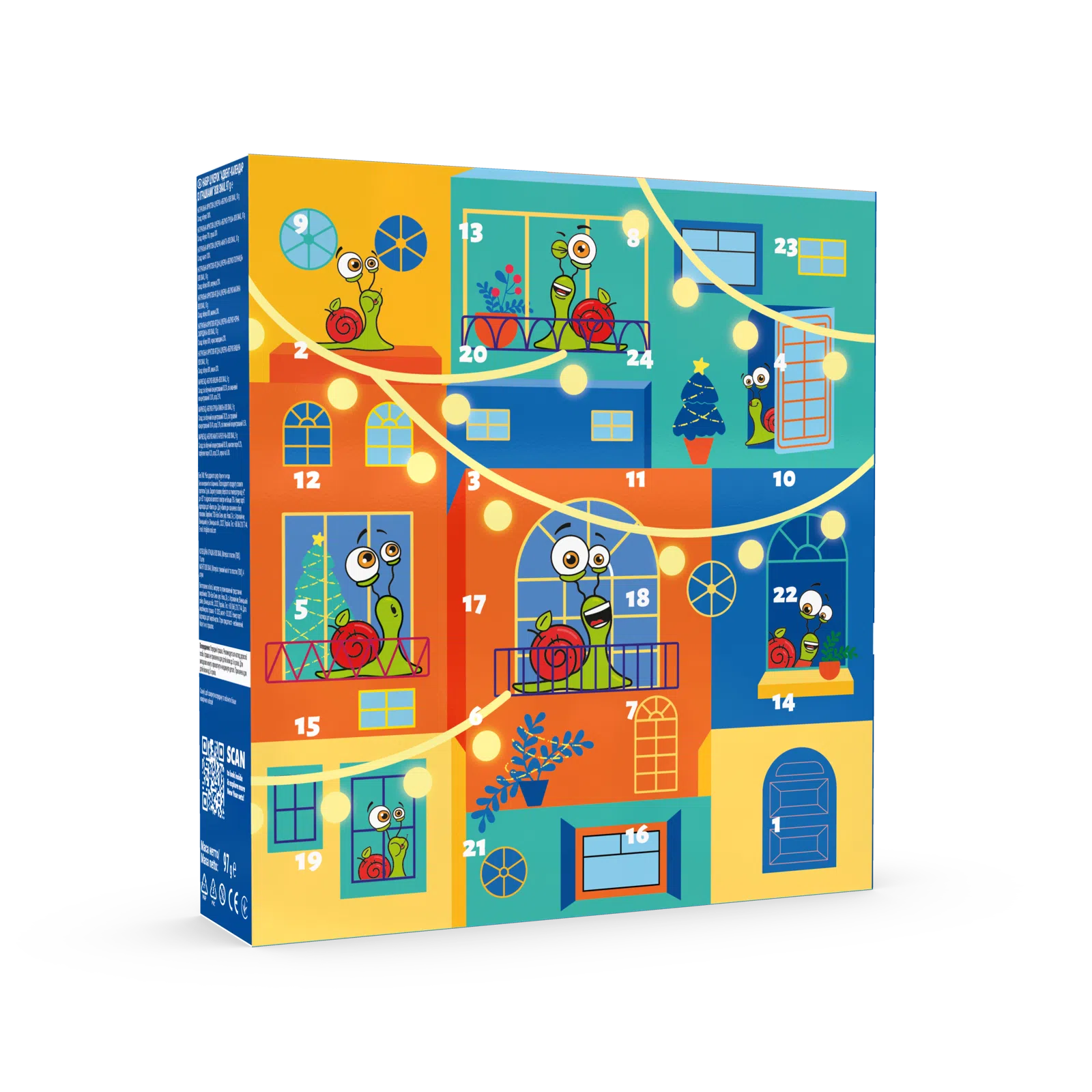 Pro letošní rok ještě více vzrušující a nabitý lákavými dárky. Celá kolekce hraček SnailCity v jednom kalendáři. Kalendář plný zdravých ovocných dobrot a atraktivních hraček, který nabízí skvělou alternativu tradičním cukrovinkám.