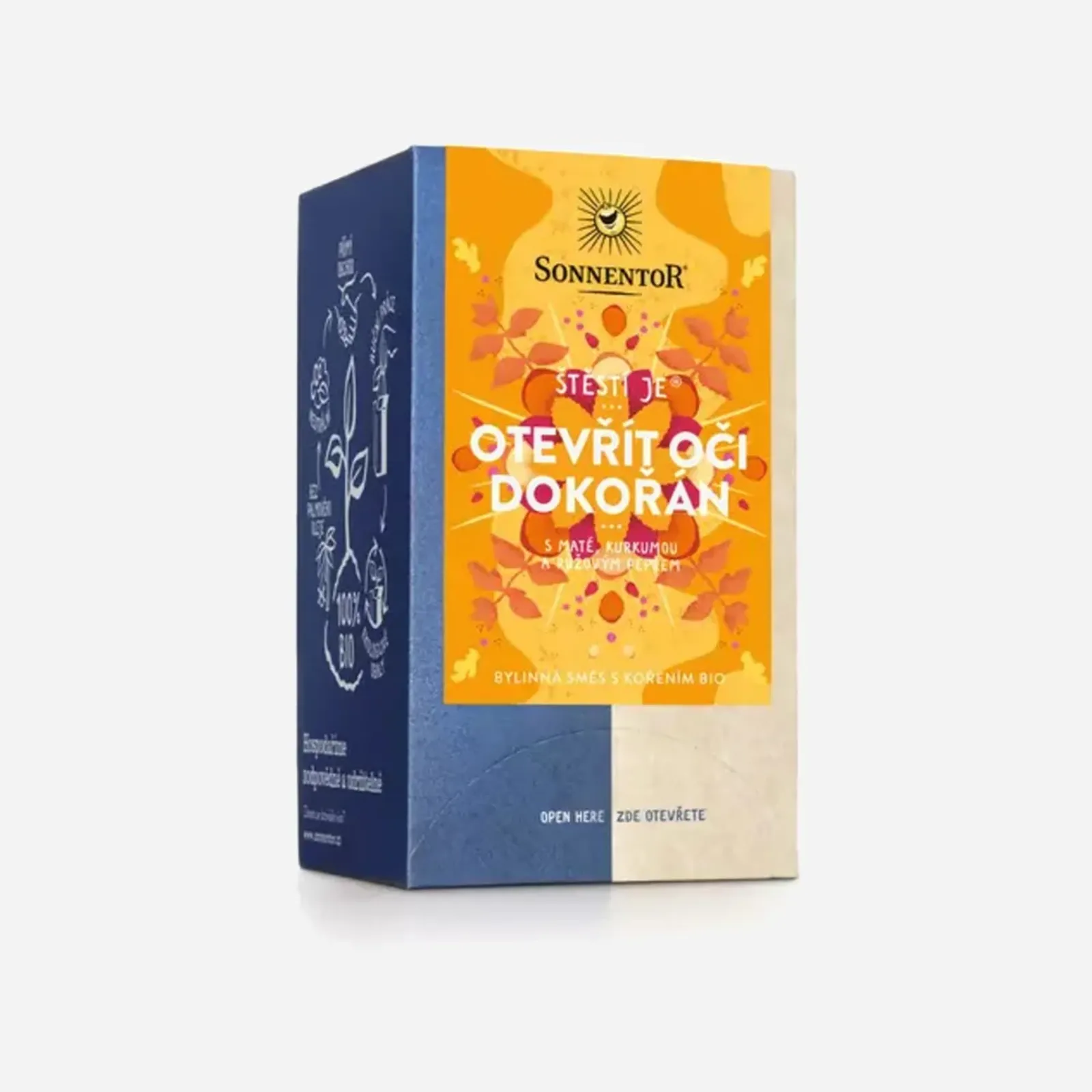 Štěstí je otevřít oči dokořán BIO je bylinná směs s maté, kurkumou a růžovým pepřem.