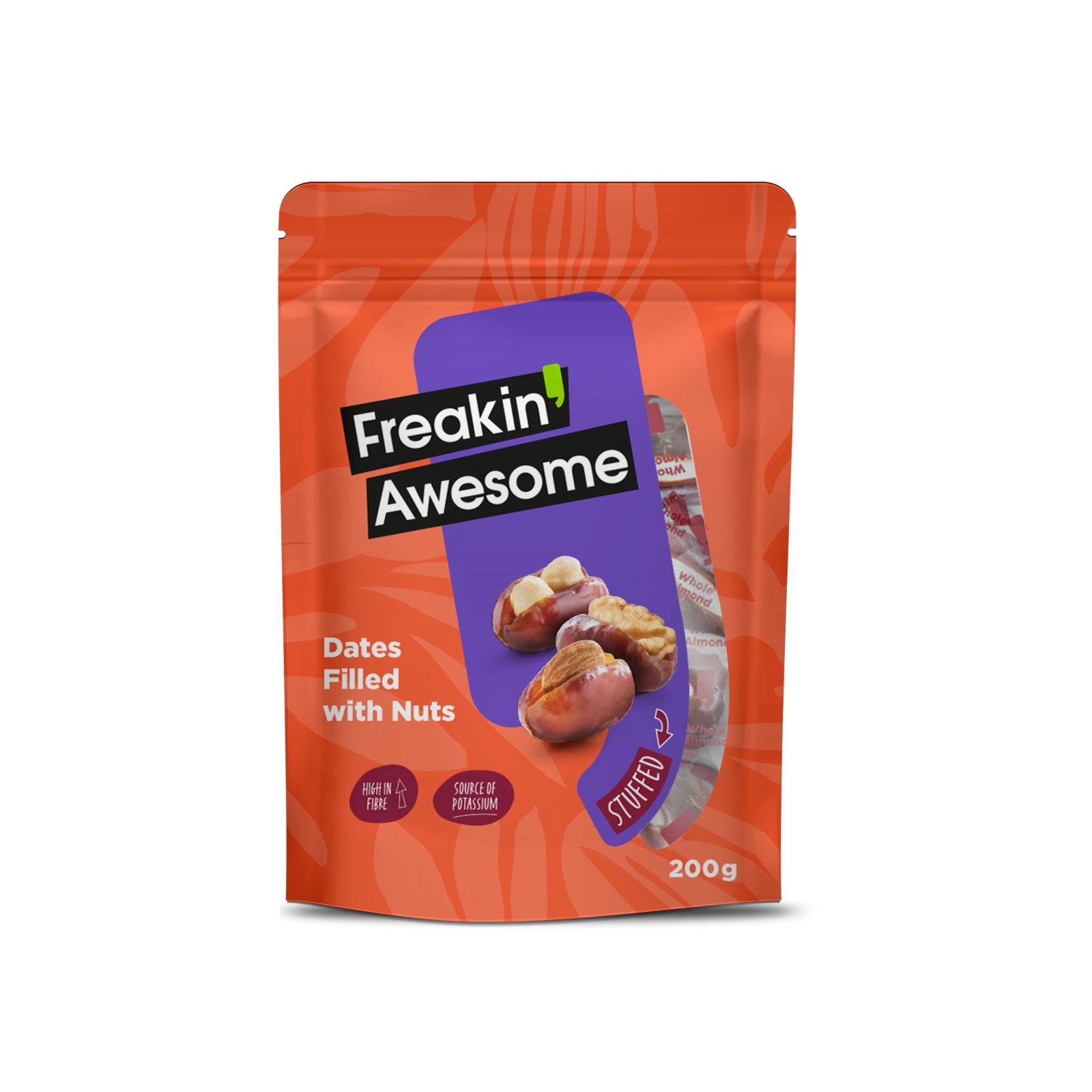Spojení prémiové datle odrůdy Khalas a výběrového ořechu/mandle (v originálním balení každého jednotlivého plodu) představuje ideální svačinový snack. Ať už do práce, do školy či posilovny.