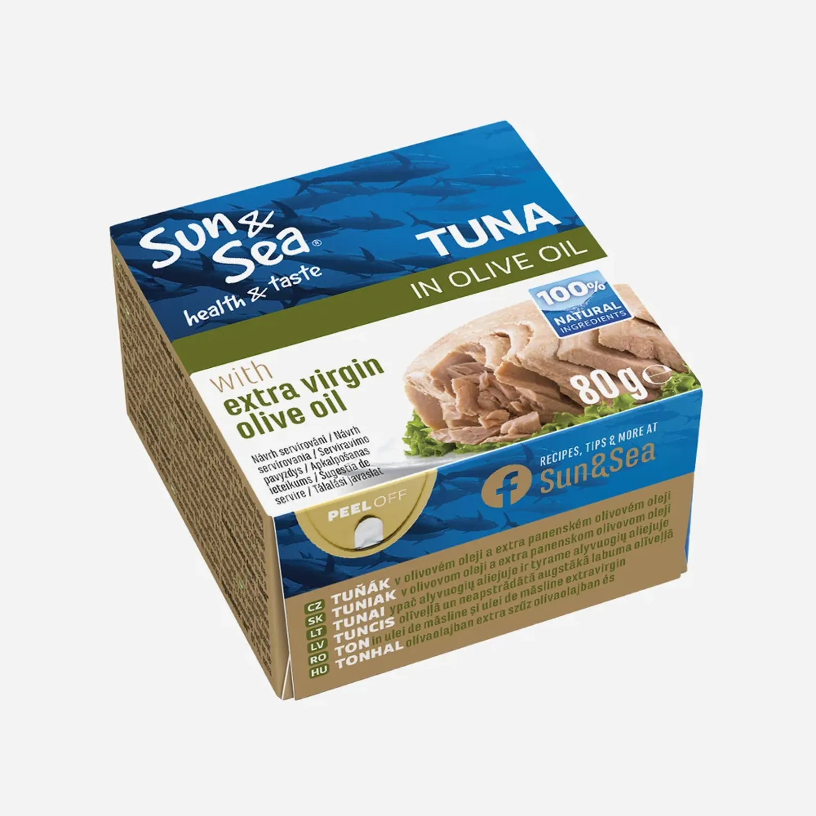 Složení:tuňák (Katsuwonus pelamis) 65 %, extra virgin olivový olej 21 %, olivový olej 13 %, jedlá sůl