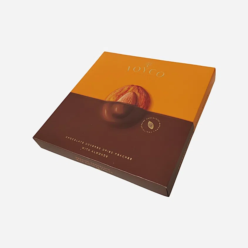 Joyco Sušené broskve v čokoládě s mandlemi, 190 g