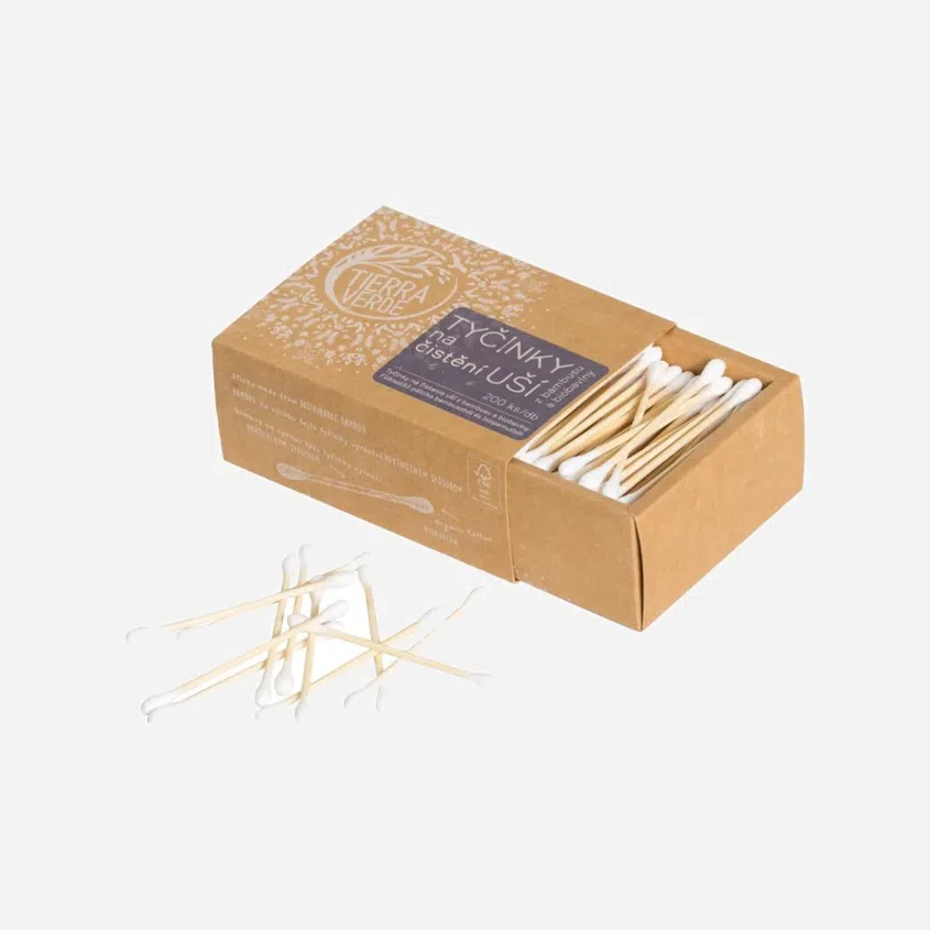 Tierra Verde Tyčinky na čistění uší z bambusu a biobavlny, 200 ks