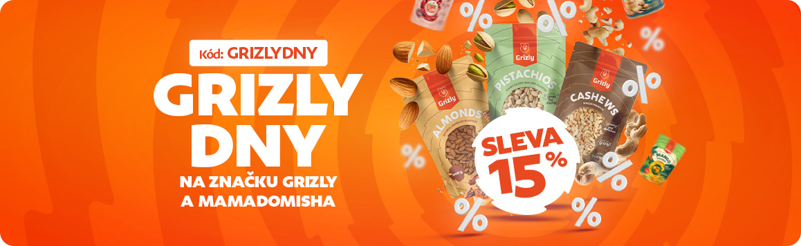 Grizly dny právě odstartovaly! Ať už máte chuť na pořádnou dávku ořechů, sušené ovoce, nebo třeba zdravé mlsání, právě teď pořídíte vaše oblíbené dobroty za ještě výhodnější ceny! Během Grizly dnů totiž nakoupíte produkty značky Grizly a Grizly by @mamadomisha se slevou 15 % – ideální čas doplnit zásoby, vyzkoušet nové dobroty nebo si prostě jenom udělat radost!