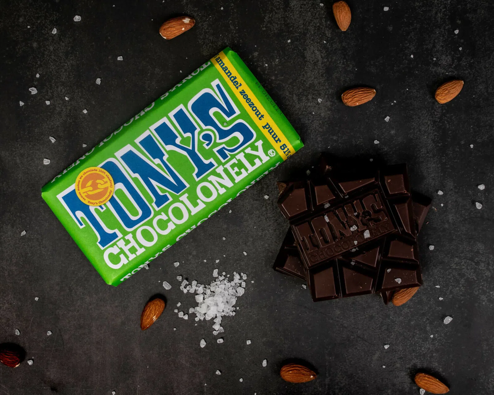 Tony’s Chocolonely Hořká čokoláda, mandle a mořskoá sůl 180 g