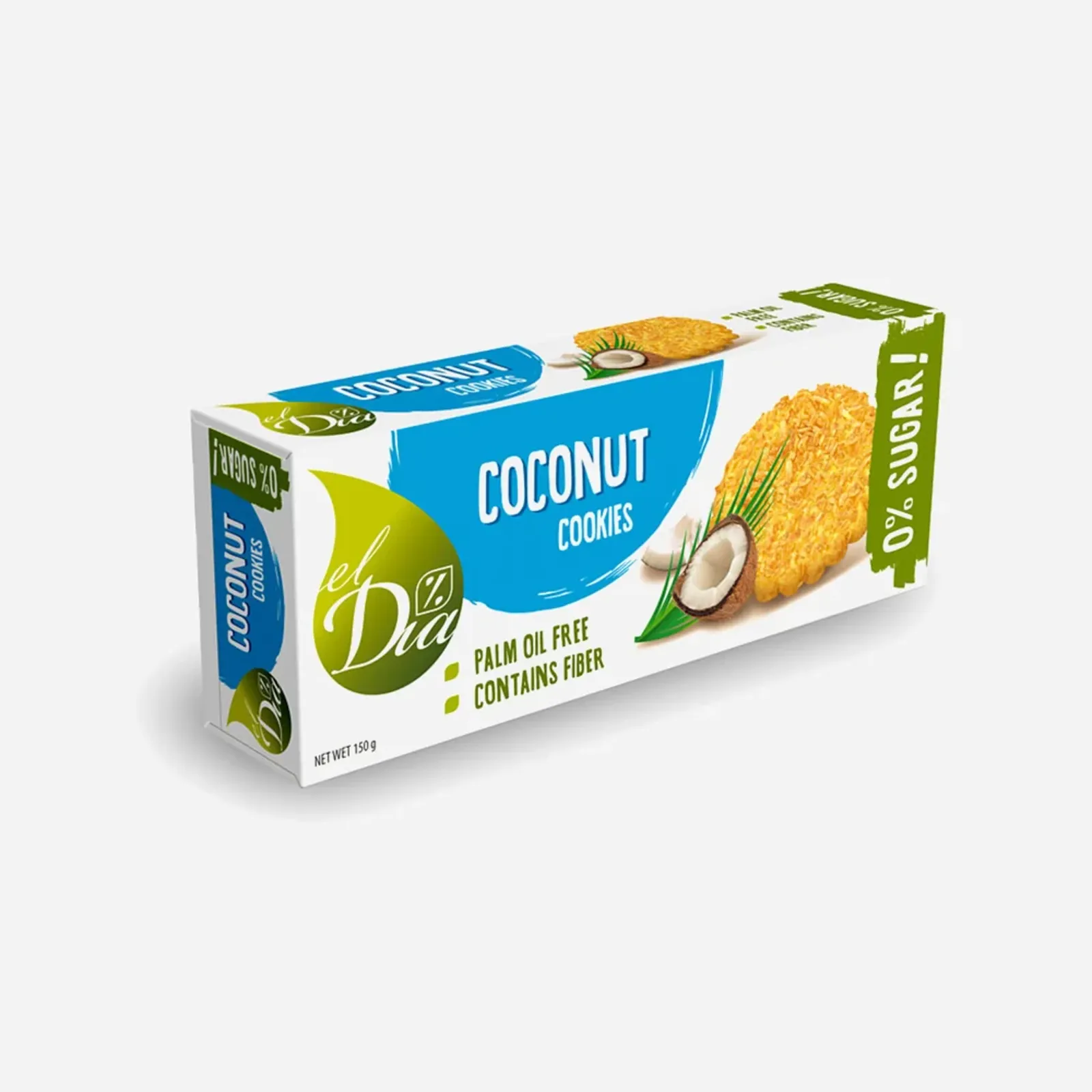 Složení: Pšeničná mouka, tuk (řepkový olej a kokosový olej), sladidlo: maltitol, sušený kokos, vejce, ovesné vlákno, uhličitany sodné, difosfáty, sůl, b-karoten.