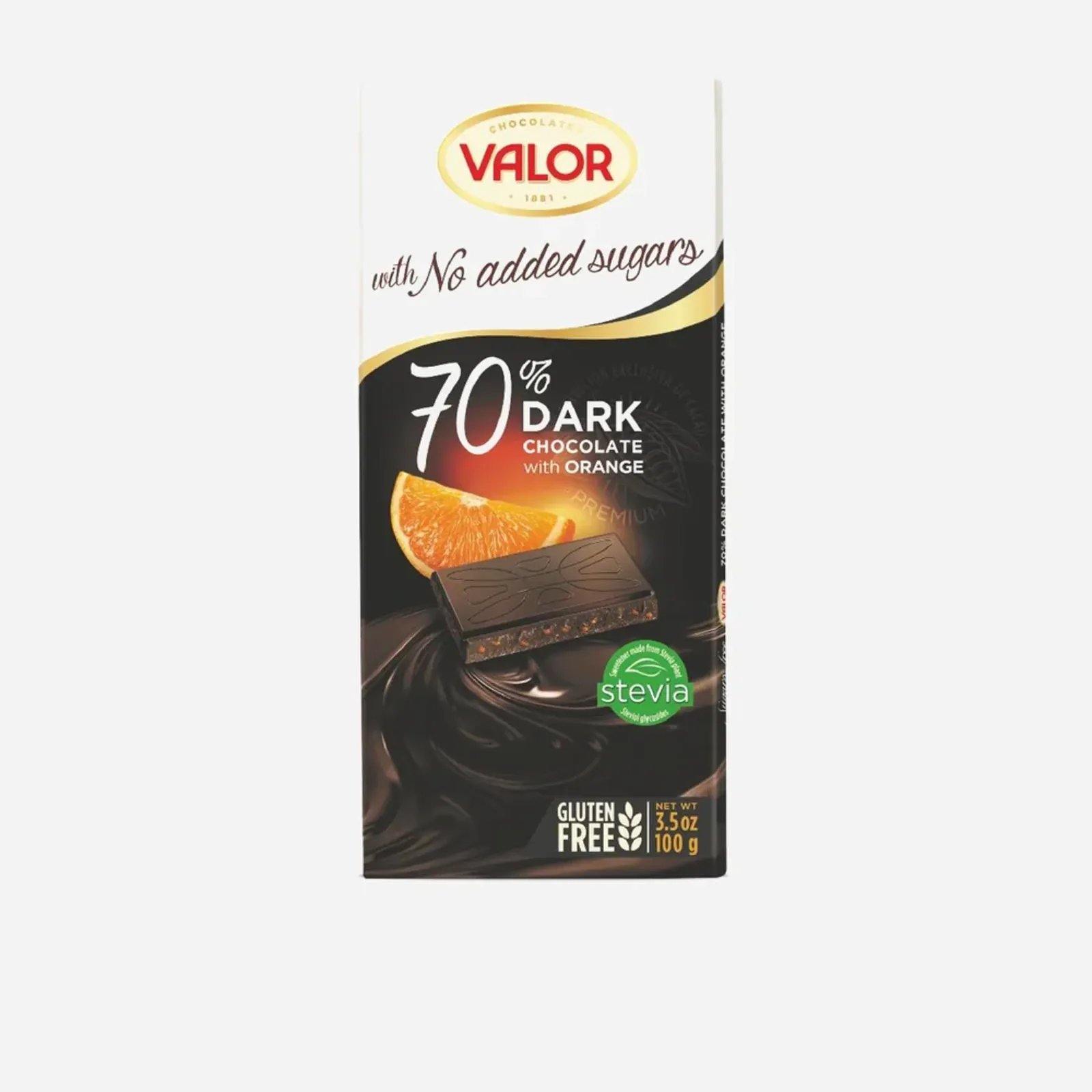 Značka Valor se zpracování čokolády věnuje více než 130 let. Vybírá nejlepší kakaové boby z různých koutů světa, zejména z Ekvádoru, Panamy a Ghany, které dodají jedinečné aroma, chuť a texturu. Všechny produkty Sugars Free (bez cukru) a No added sugars (bez přídavku cukru) jsou slazené glykosidy steviolu, rostlinným sladidlem získaným ze stévie, a maltitolem.