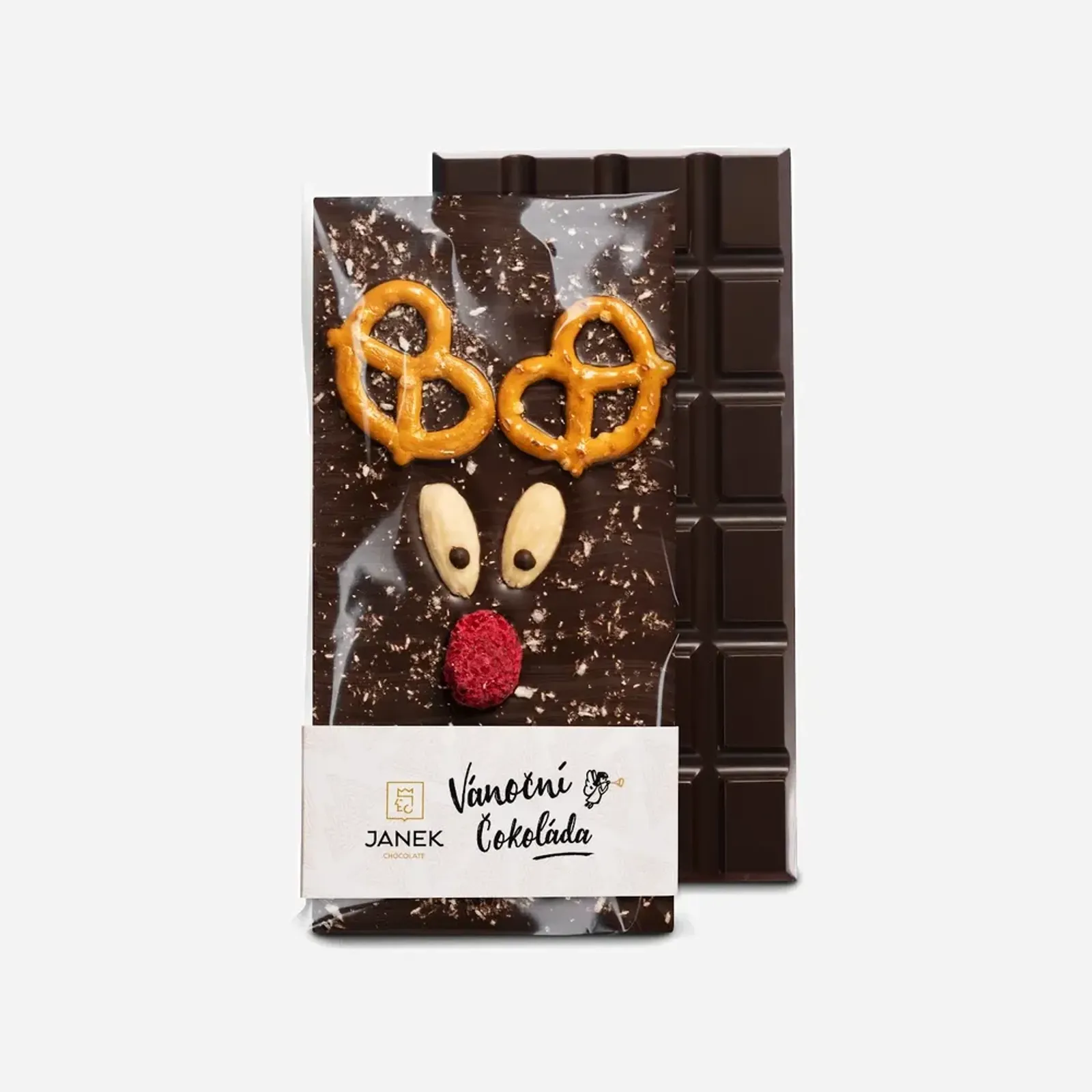 Čokoládovna JANEK Vánoční čokoláda se sobem - tmavá, 90 g