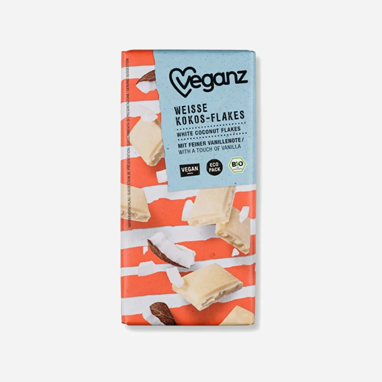 Veganz Bílá čokoláda s kokosovými lupínky BIO 80 g