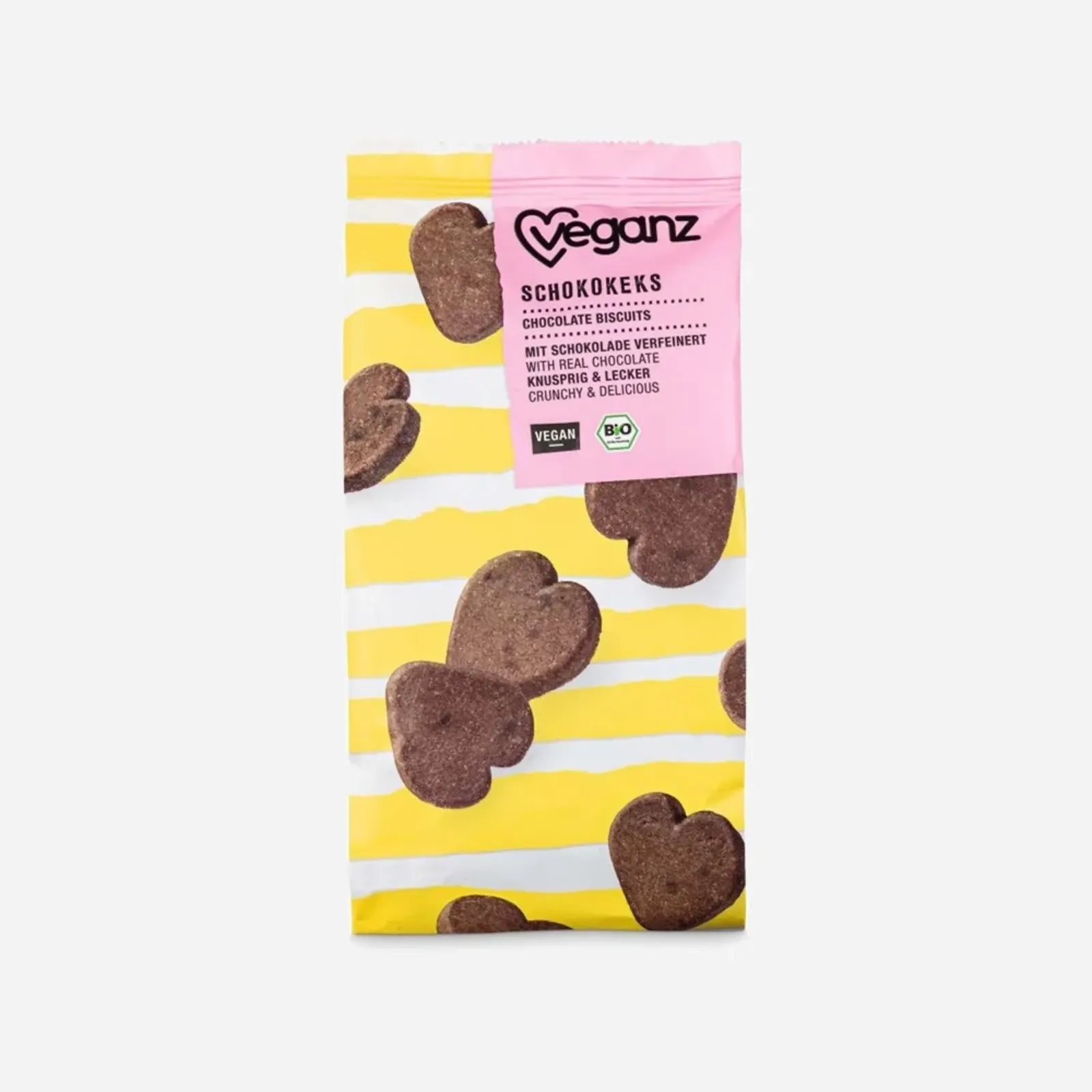 Veganské čokoládové sušenky berlínské značky Veganz jsou skvělé ke kávě i čaji nebo jako svačinka na cestách i v kanceláři. Produkt je v BIO kvalitě a bez palmového oleje.