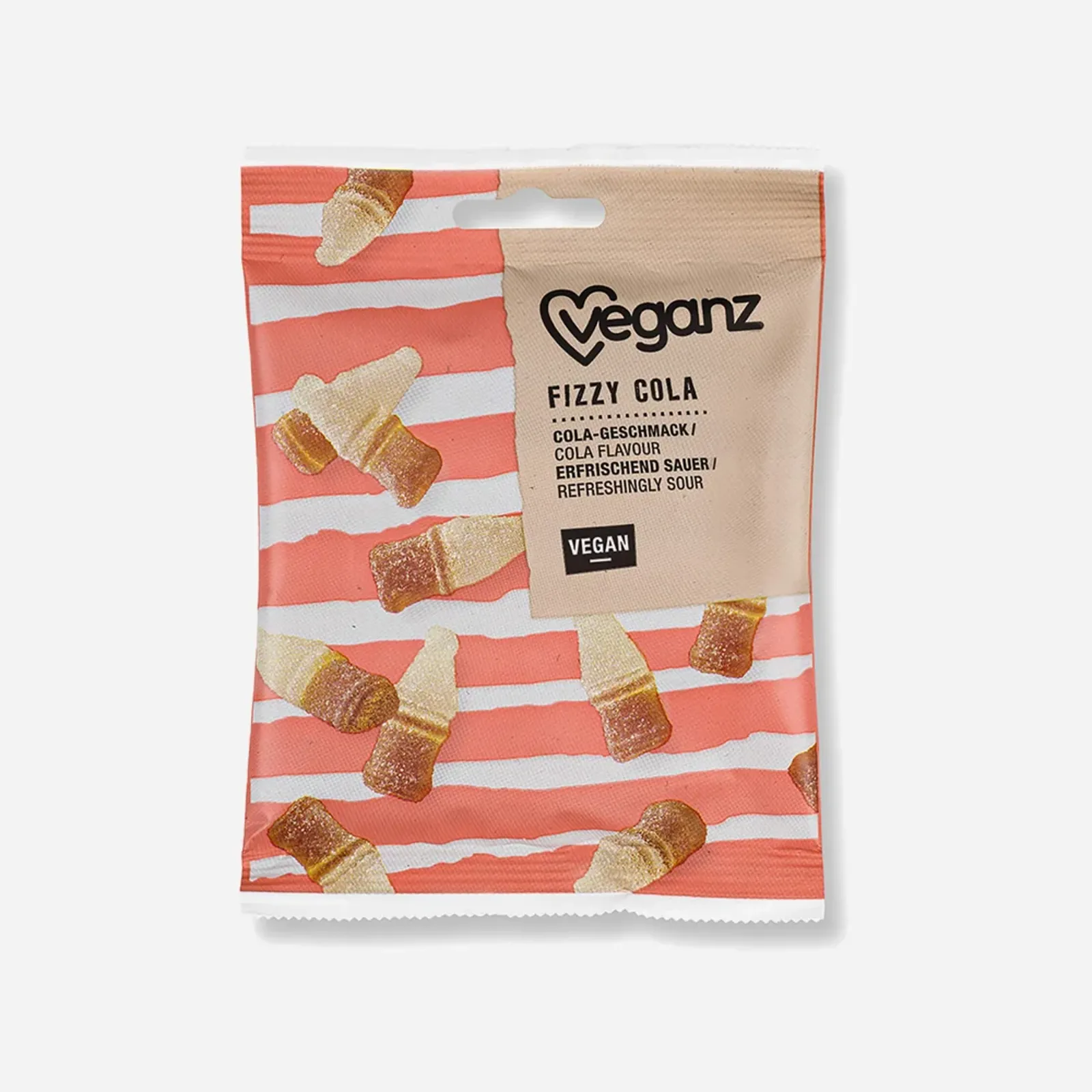 Kyselé bonbóny ve tvaru lahvičky s příchutí coly od německé udržitelné značky Veganz. Ač gumové, jsou bez želatiny, umělých barviv a konzervantů.