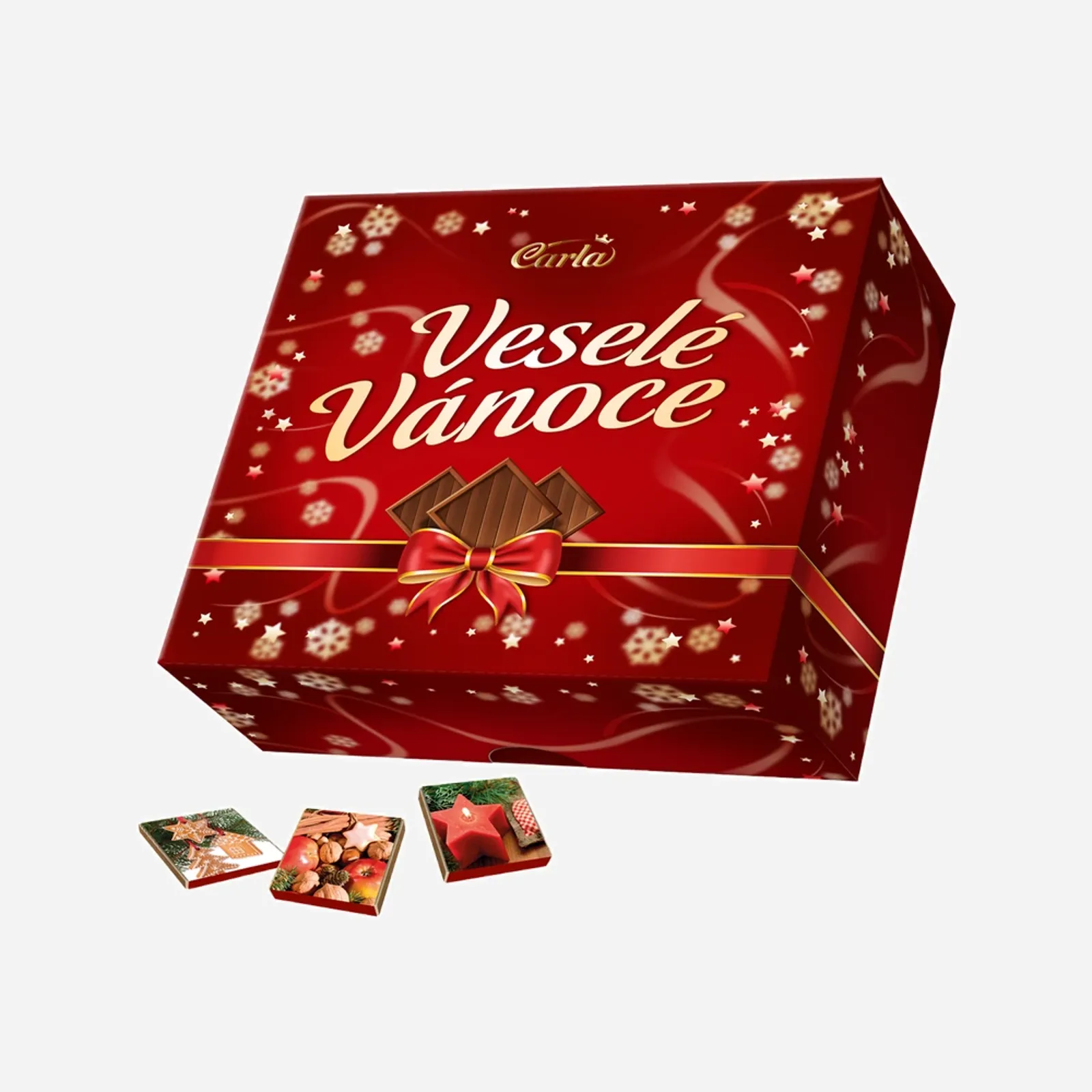 200 neapolitánek z mléčné čokolády v designu Veselé Vánoce.