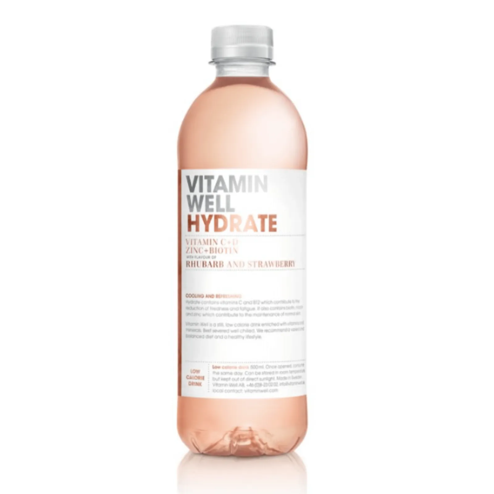 Vitamin Well Hydrate je ochlazující a osvěžující nízkokalorický nápoj s příchutí rebarbory a jahody s bohatým obsahem vitamínů a minerálů. Díky obsahu vitamínu C a B12 přispívá ke snížení únavy a vyčerpání. Biotin, niacin a zinek zase přispívají k udržování normálního stavu pokožky a vlasů. Vychutnejte si skvělou chuť neperlivého, nízkokalorického nápoje Vitamin Well Hydrate a mějte ho vždy po ruce.