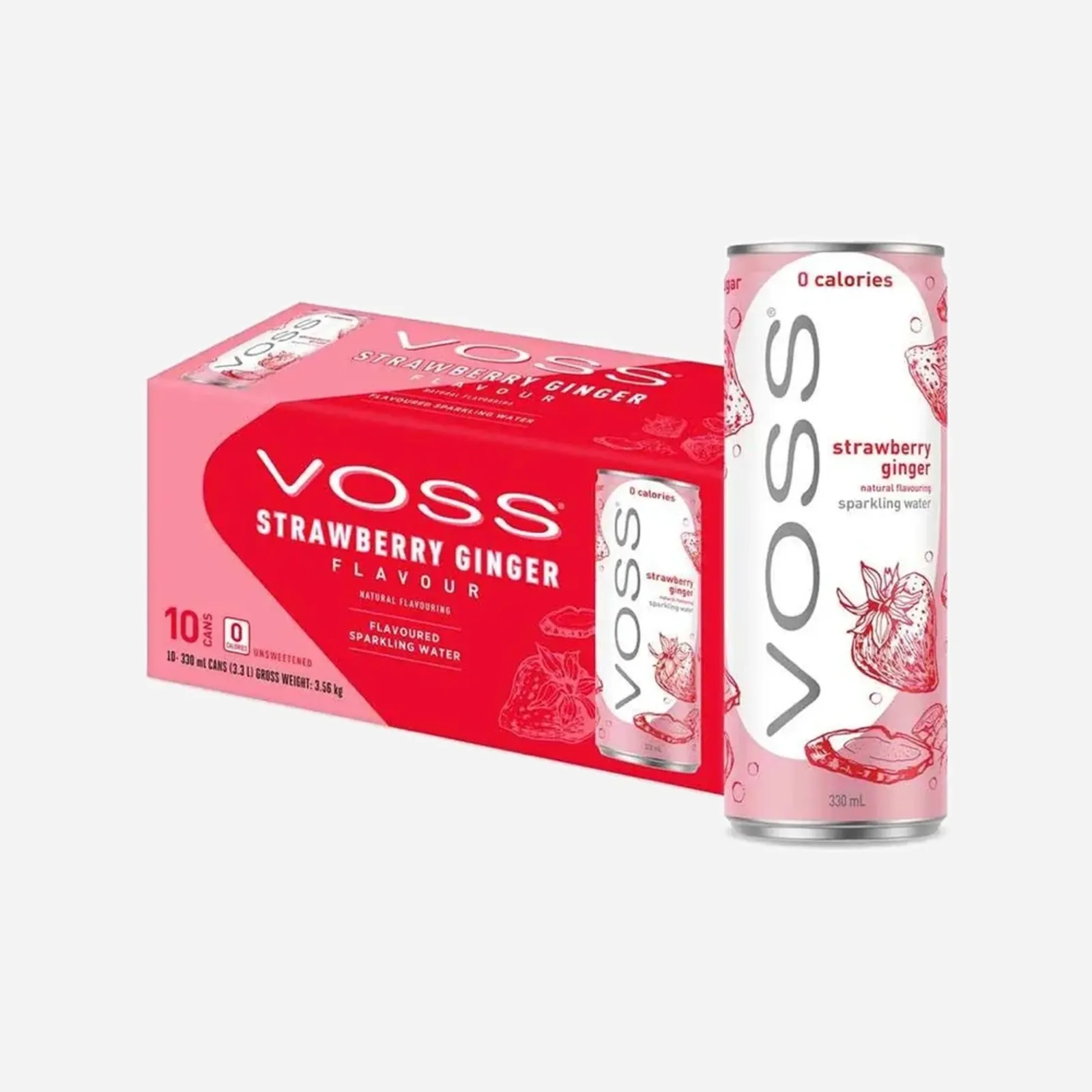 Voss Ochucená perlivá voda jahoda a zázvor, 330 ml