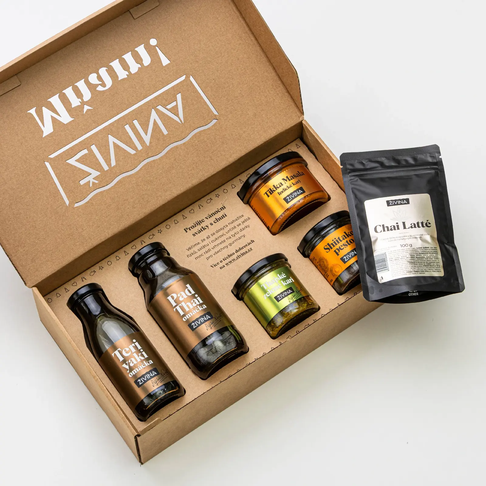 Dárek miluji Živinu je „výběr jejich největších hitů“ – pečlivě sestavený z šesti produktů, které si jejich zákazníci oblíbili nejvíc. Ideální jako dárek pro všechny milovníky dobrého jídla, nebo jako zásoba chutí, na kterou se může každý spolehnout. Od asijských klasik přes krémové indické kari až po voňavý Chai Latté nápoj na zahřátí – s tímhle balíčkem se v kuchyni ani u stolu nikdo nudit nebude.